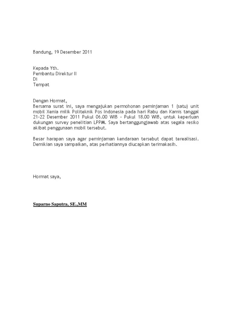 Oleh karena itu, surat permohonan peminjaman mobil dinas adalah salah satu surat yang penting. Contoh surat permohonan peminjaman kendaraan dan alat rambu lalu lintas ke dinas perhubungan. Peminjaman kendaraan dan alat rambu lalu lintas ke dinas perhubungan. Dalam pembuatannya, sama seperti surat pada umumnya. Surat peminjaman bisa dikeluarkan perusahaan, instansi,.